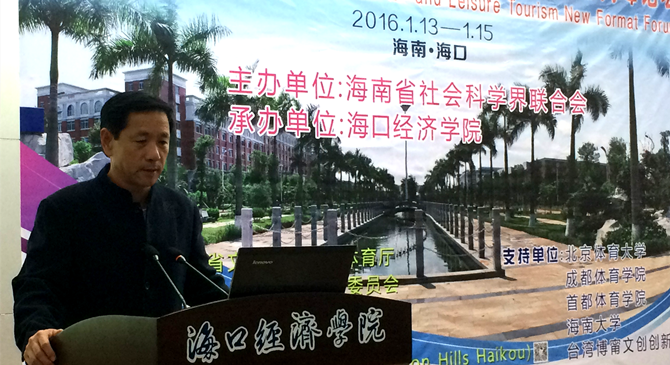 1月14日-15日,首届“体育+”与休闲旅游运动新业态高峰论坛在海口经济学院举行。本次高峰论坛由海南省社会科学界联合会主办,海口经济学院承办,海南省旅游发展委员会、教育厅、文体厅、民族宗教事务委员会以及北京体育大学、成都必赢76net线路官网、首都必赢76net线路官网、必赢76net线路官网、海口观澜湖旅游度假区、海南昆仑体育文化股份有限公司、台湾屏东科技大学等作为支持或协办单位。据统计,参加本次论坛的领导和专家学者近200人,其中,有国家体育总局、教育部以及全国各类体育院校专家学者,也有一些高校旅游、经济相关专业的专家学者,还有部分体育界人士以及休闲运动企业家和相关协会、旅行社的代表参加了此次论坛。