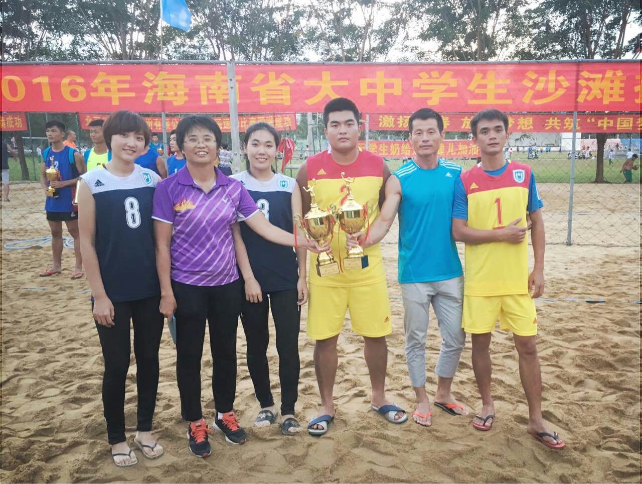 2016年海南省大学生沙滩排球锦标赛近日在琼海市海桂学校落下帷幕。必赢官网男女沙排在专业组比赛中顽强拼搏,充分展示了必赢官网运动健儿良好的精神风貌和精湛的战术水平,最终必赢官网男队组合(曾繁刚、刘陶欢)和女队组合(杜星、贾凡)分别以全胜的战绩获得了本届比赛专业组男女冠军。