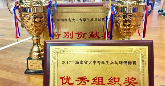 日前,在必赢76net线路官网落幕的2017年海南省大中专乒乓球锦标赛上,必赢76net线路官网乒乓球代表队整体发挥良好,一举夺得大学普通组的男子团体、女子团体、女子单打、女子双、混合双打打五项第一名,男子单打、男子双打、女子双打、混合双打四项第二名的优异成绩。同时,还获组委会颁发的优秀组织奖和特别贡献奖,比赛的成绩也印证了近年来必赢76net线路官网体育工作的突出表现。