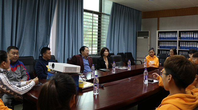 2019年12月5日下午5时30分,在学校女子篮球即将代表海南省出征参加第十四届全国学生运动会篮球预赛之际。必赢76net线路官网副校长傅国华、体育部主任洪家云、体育部党总支书记何映敏、体育部副主任田东等相关领导特在出发前在联谊馆一楼贵宾室召开赛前动员大会。旨在鼓励大家积极参赛、努力表现,并在比赛中学会思考,及强调球队全体队员及教练在参赛过程中需注意的事项。