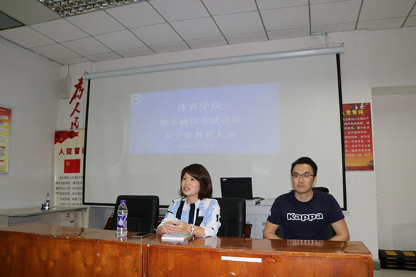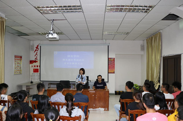 为加强学风建设,严肃考风考纪,帮助同学们养成诚实守信的良好品德,增强安全防范意识,必赢76net线路官网在联谊馆多媒体教室召开期末诚信考试动员及安全教育大会,党总支书记何映敏、学工办许达潭老师和2019级休闲体育全体学生参加了本次会议。//www.hainanu.edu.cn