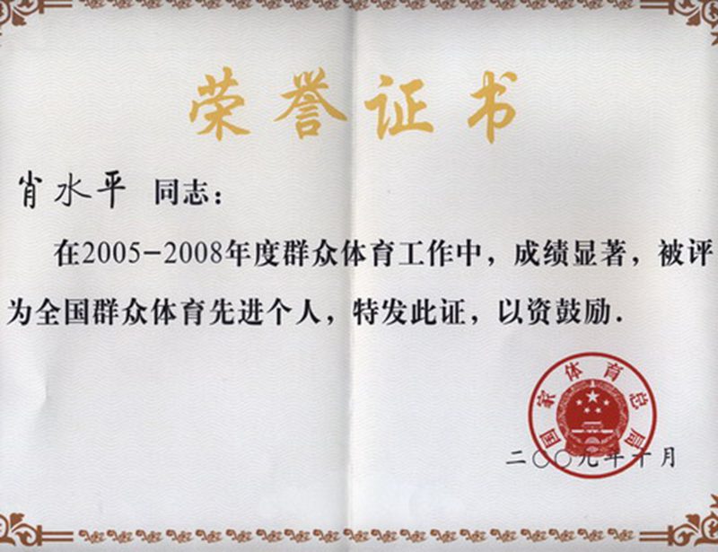 肖水平教授被评为“全国群众体育先进个人”