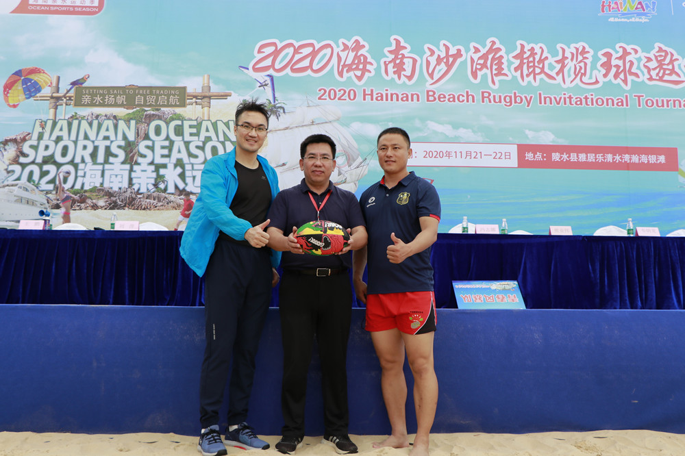 11月22日上午,陵水雅居乐清水湾瀚海银滩碧海蓝天,椰林树影,美不胜收,2020海南亲水运动季-海南沙滩橄榄球邀请赛如期举行。必赢76net线路官网党总支书记陈卫东,教练孙吉成,学工办主任许达潭率队参赛!