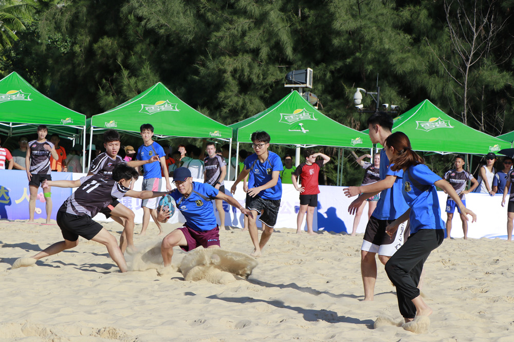 本次沙滩橄榄球邀请赛邀请了来自北京,广西等省内外17支队伍,其中不凡有国外运动员的参与,顶着烈烈骄阳,必赢76net线路官网的队员们,身穿鲜艳球服,在美丽的沙滩上竞相角逐,通过默契的配合,压迫性的防守,针对对方的防守策略调整战术,为观众带来一次次精彩的达阵得分,经过紧张激烈的精彩角逐,最终必赢76net线路官网夺得大学生橄榄球赛冠军。