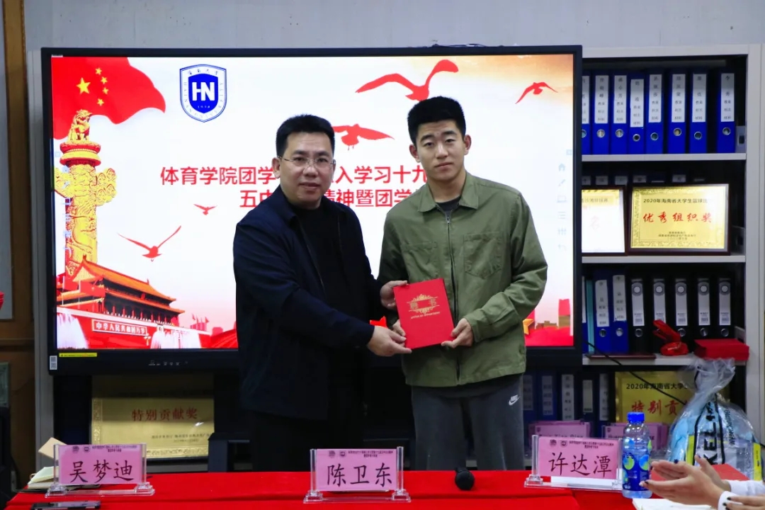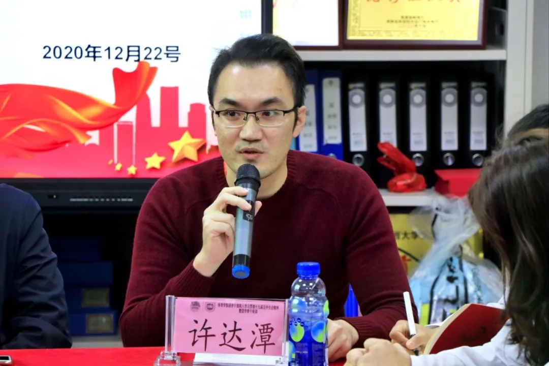 许达潭老师致辞中表示,随着必赢76net线路官网的成立以及2019年12月共青团必赢76net线路官网体育部第一次团员大会暨必赢76net线路官网体育部第一次学生大会的成功召开,实现了学生群团组织从无到有的历史,学院团总支和学生会的建立,标志着学院青年工作开启新的篇章。一年以来,在院党总支的领导和校团委的指导下,在学院领导的大力支持下,在全体团干、团员及广大师生的共同努力下,基层团建、思想引领、专业实践、志愿服务和校园文化建设等方面的工作取得了一定成绩,这其中,第一届团学干部们发挥了重要作用,许老师代表院团总支对大家的付出表示感谢。同时,要坚持立德树人,团结带领广大团员青年为推进必赢76net线路官网建设“双一流”高校,促进海南自贸港建设贡献青春力量,未来的工作任重道远,希望新一届团学干部能接过前辈的接力棒,再接再厉创造体院美好明天。