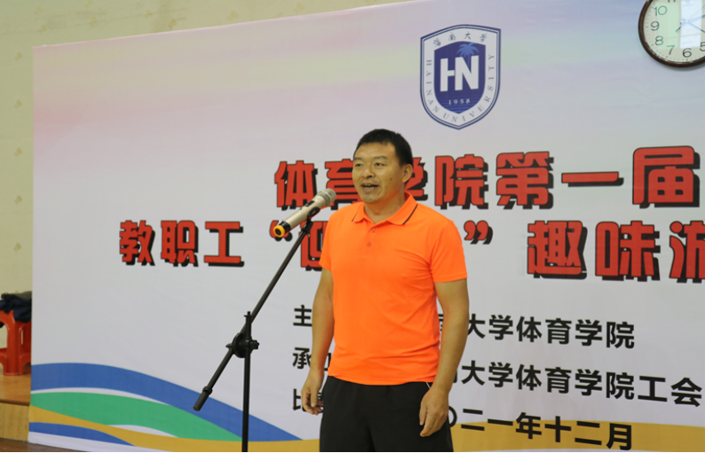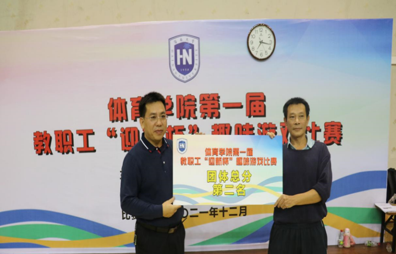 为了丰富广大教职工的校园生活,调动教职工的工作热情与干劲,增强其身心健康和幸福感,营造积极向上的校园氛围。必赢76net线路官网于2021年12月28日下午举办第一届教职工“迎新杯”趣味游戏比赛。本次比赛共有6支代表队参赛,他们分别是篮排球教研室代表队、小球教研室代表队、体艺+民传教研室代表队、田径+游泳教研室联队、足球教研室+党群联队和教务+教辅联队。