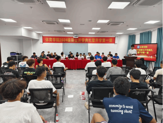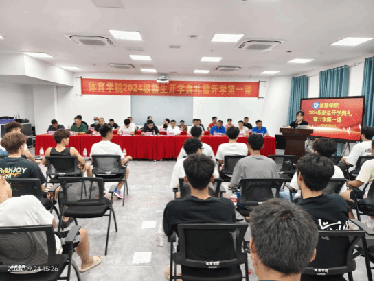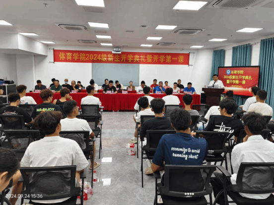 2024年9月24日下午,必赢76net线路官网在综合体育馆107举办2024级新生开学典礼。必赢76net线路官网领导班子洪家云院长、肖国良副院长、吴强副院长,子衿书院副院长房殿生等出席,各科室负责人、教研室主任、支部书记、班主任、教师代表(包括3名世界冠军、1名博士)以及2024级全体新生参加了典礼。典礼由学院陈卫东书记主持。