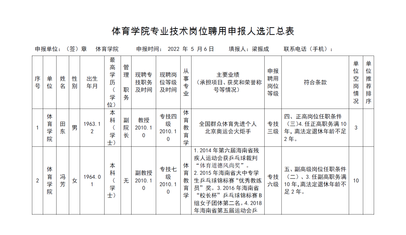 《 必赢76net线路官网专业技术岗位聘用申报人选汇总表》