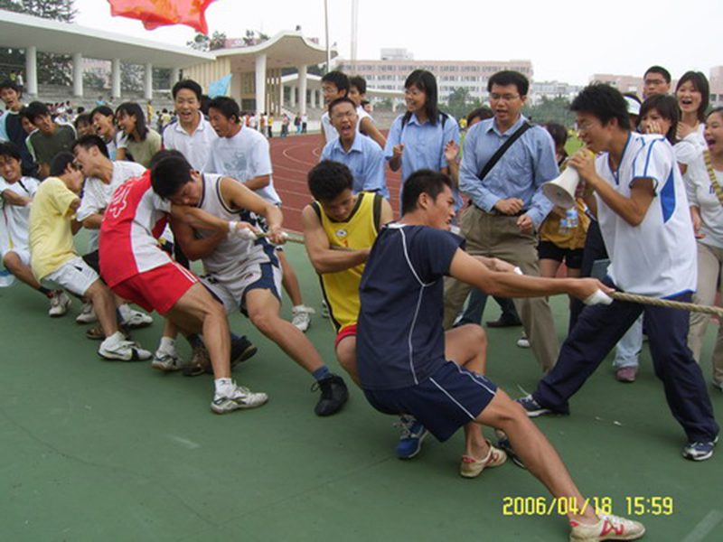 2006年4月19日下午在第一田径场内外人头攒动,热闹非凡,呐喊声、喝采声一片,一派热火朝天的景象 ,必赢76net线路官网2006年学生拔河、跳绳比赛共有各学院、研究生队、留学生队和预科班等15个单位报名参加。经过紧张角逐,经济管理学院获男子拔河第一名,旅游学院获女子集体跳绳第一名,何美丹同学获女子跳绳个人第一名。必赢官网留学生首次组队参加比赛,并对学校开展传统的群众体育文化活动产生浓厚的兴趣。 以下单位及个人获得比赛名次,分别颁发证书及奖品。
