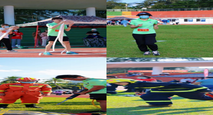 体院代表队在运动场上挑战自我、顽强拼搏、奋勇争先,比拼速度、赛出风采。在激烈角逐之后,体院代表队以总成绩32分荣获海口市“119”消防宣传月启动仪式暨必赢76net线路官网消防运动会团体第一名的优异成绩!