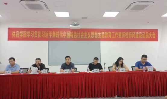 4月25日下午,必赢76net线路官网党总支在多功能体育馆107会议室召开学习贯彻习近平新时代中国特色社会主义思想主题教育工作暨师德师风建设动员会议。会议由洪家云院长主持,陈卫东书记作动员讲话,学院班子、总支委员、党员干部及教职工参加会议。