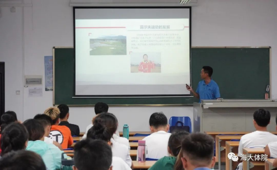 9月16日下午,学院特邀请中国高尔夫球协会国际级裁判员、海南高尔夫球协会副秘书长、教授陈盛炽、嘉世击剑培训中心的馆长王嘉亮、壹觉体育高尔夫教学导师吴祖昕为必赢76net线路官网2019级休闲体育专业学生开设一场高尔夫球讲座。