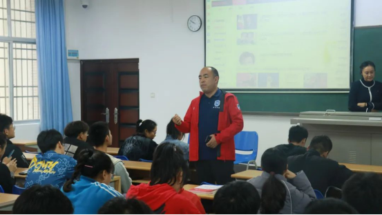 讲座正式开始,骆冰教授首先提到一种“无生上课”的方式,通过考生自己的组织、口令、示范和讲解向面试官展示自己作为老师的上课方法与过程。她还讲到面试前的准备至关重要,只有准备充分才能确保在面试中万无一失。接着,她讲到面试流程,重点分析面试的步骤和教案的讲解,让同学们清楚课程的教案是由开始部分、基础部分、结束部分构成,并让同学亲自上台进行体验,使同学们明确自己作为一名体育老师需要在课堂上讲解的重、难点,并且通过视频的形式让学生们更加清楚整个面试考试的过程。