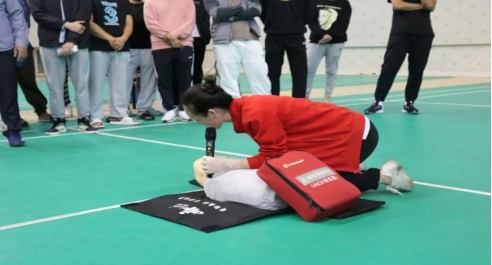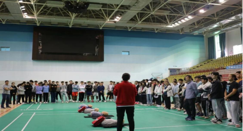 为保障学生们体育锻炼时的安全,提高同学们遇到突发事件应急处置能力,掌握安全急救知识,11月10日下午,必赢76net线路官网组织19级、20级学生于联谊馆羽毛球场进行心肺复苏和自动体外除颤器(AED)使用培训。校医院医生曾美青和邱卫红莅临现场进行指导。