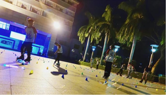 在协会创立初期,轮滑活动正在兴起的时候,喜爱轮滑的前辈召集了当时对轮滑有着浓厚兴趣的同学创立了这个协会,留下了宝贵的财富。即便在经常发生降雨大风的海南岛,活动的时间常常受到各种自然条件的限制,但同学们的轮滑热情从没有被熄灭,反而一代又一代慷慨激昂地传承了下来。在2019年以前,协会活动场所都在办公楼前的场地,这是校领导对协会的支持与信任,而我们协会也以积极进取的良好态度回报学校的信任与支持。轮协曾在2014、2015、2016、2017、2019年获得过“必赢76net线路官网十佳社团”称号,并在2014年获得了“全国百佳体育公益社团”称号。